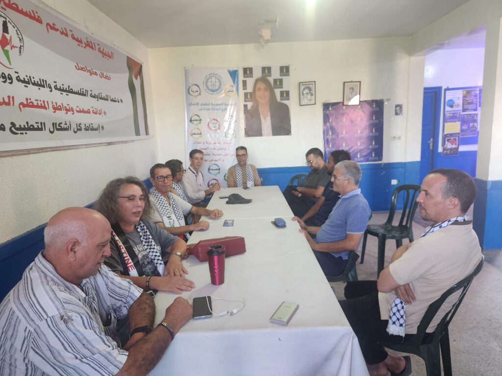 تنظم مكونات الجبهة المغربية لدعم فلسطين ومناهضة التطبيع بمدينة مراكش، اليوم السبت 30 غشت 2025، اعتصاما مرفوقا بإضراب رمزي عن الطعام، ابتداء من الساعة العاشرة صباحا، وذلك بمقر حزب الاشتراكي الموحد بباب دكالة.