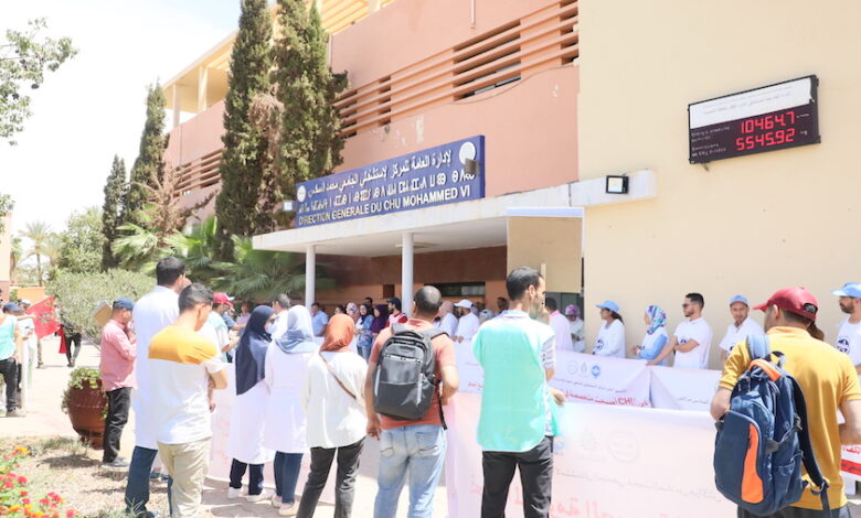 طالب التنسيق النقابي بالمركز الاستشفائي الجامعي محمد السادس بمراكش والذي يضم النقابة المستقلة للممرضين والجامعة الوطنية للصحة المنضوية تحت لواء الاتحاد المغربي للشغل والجامعة الوطنية للصحة المنضوية تحت لواء الاتحاد العام للشغالين بالمغرب، (طالب) إدارة المركز الاستشفائي الجامعي محمد السادس بمراكش بتحمل مسؤولياتها القانونية والأخلاقية، والخروج ببلاغ يوضح موقفها الصريح من الإعلان الأخير لجميعة تدعو فيه لوضع طلبات قصد العمل بصفة مؤقتة داخل المركز، في إطار برنامج “أوراش” يشمل تخصصات يؤطرها القانون.