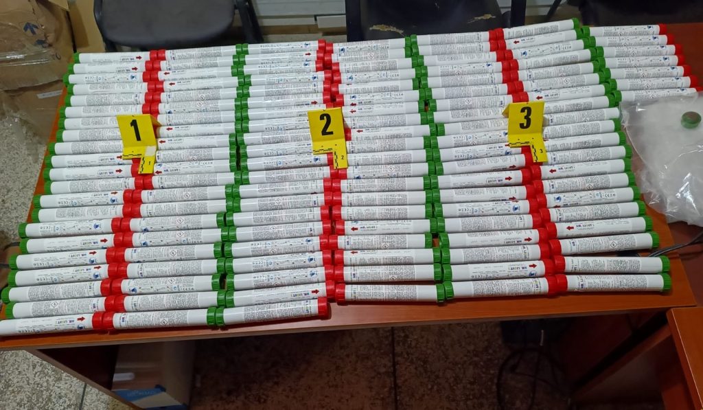 عملية التفتيش القانونية بمقر سكناه أسفرت عن حجز 119 شهاب اصطناعي من النوع الكبير ذو التسمية التجارية MR LIGHT 1.
