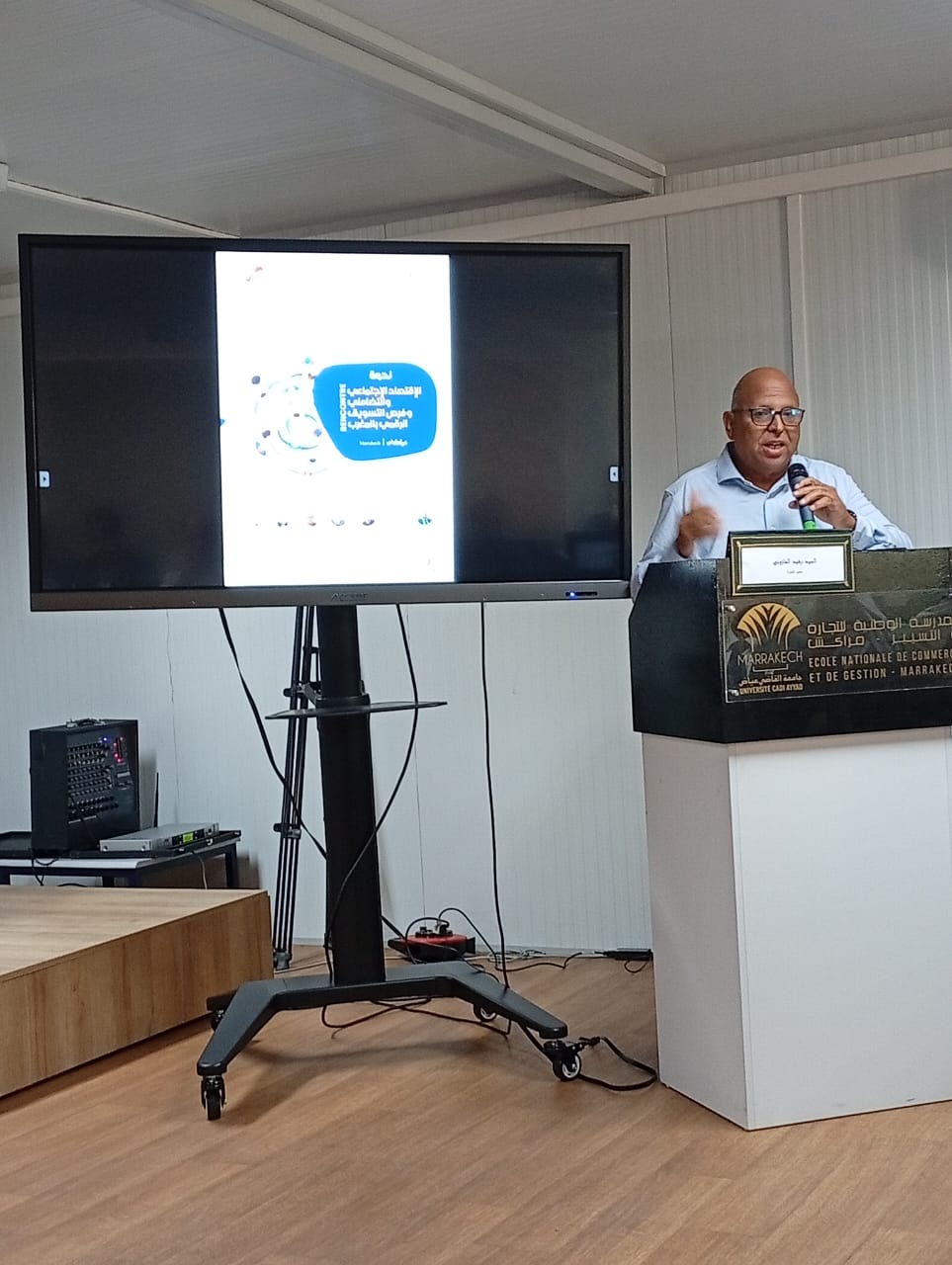 الندوة التي اختير لها شعار “الاقتصاد الاجتماعي والتضامني رافعة للتنمية المجالية” وتولى تسييرها الأستاذ رشيد المازوني رئيس لجنة الإعلام و التواصل بالجمعية، (الندوة) افتتحت بكلمة ترحيبية باسم المدرسة الوطنية للتجارة والتسيير التي كانت في مستوى تنظيم التظاهرة الثقافية، تلتها كلمة علي شتور نيابة عن الدكتور بوعزة الخراطي رئيس الجامعة المغربية لحقوق المستهلك تضمنت المستوى الذي يعرفه الاقتصاد الاجتماعي و التضامني بالمغرب و نجاحات مشاريع واعدة في المجال، ثم أخذ الكلمة عبد الصادق لفروي رئيس الجمعية المغربية لحماية و توجيه المستهلك بجهة مراكش أسفي الذي أوضح الأهمية التي أصبح عليها الاقتصاد الاجتماعي و التضامني ببلادنا بعد الورش الملكي الذي أعطى انطلاقته الملك محمد السادس منذ توليه العرش، و ملخصا كرونولوجيا تطوره من معيشي محض إلى مساهم في الناتج الداخلي الخام و مبديا آفاق التسويق الرقمي او التجارة الإلكترونية، محذرا من الاستغلال الجرمي لهذه التجارة معطيا أمثلة في ذلك.