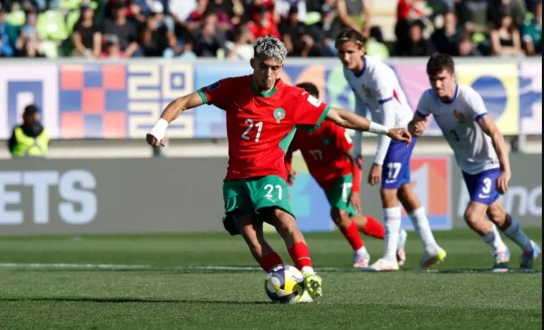 حقق المنتخب الوطني المغربي لأقل من 20 سنة إنجازا تاريخيا غير مسبوق بتأهله عن جدارة و استحقاق الى نهائي كأس العالم لكرة القدم الجارية اطورها في الشيلي عقب تفوقه على المنتخب الفرنسي بنتيجة ( 5-4 ) بعد الاحتكام الى الضربات الترجيحية في المباراة التي جمعتها مساء اليوم الأربعاء على أرضية ملعب “إلياس فيغيروا براندير” بمدينة فالباراييسو برسم نصف نهائي هذه التظاهرة العالمية .