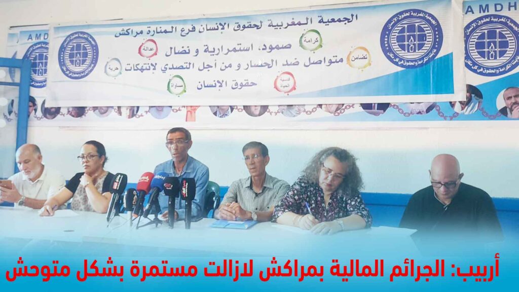 قال عمر أربيب رئيس فرع الجمعية المغربية لحقوق الإنسان المنارة مراكش، إن الجرائم المالية بمراكش لازالت مستمرة بشكل متوحش بفعل سياسة الإفلات من العقاب، وأضاف في مداخلته بمناسبة عرض التقرير السنوي للجمعية خلال الفترة الممتدة من يناير 2022 إلى غاية 20 يونيو الجاري، أن الجمعية رصدت 170 خرقا النصيب الأوفر منها يتعلق بالحقوق الإقتصادية والإجتماعية والثقافية والجرائم المالية.