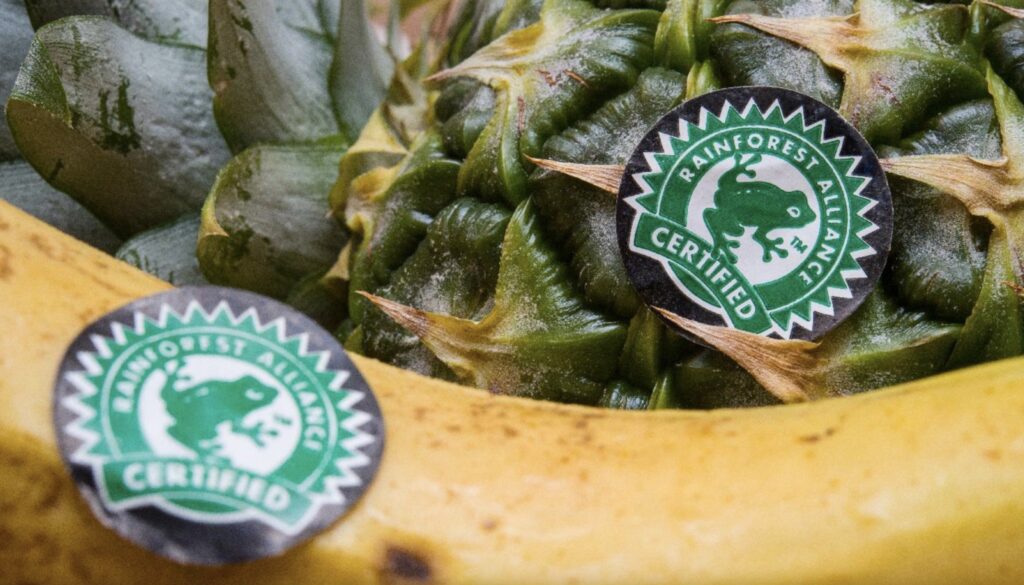 وتشير علامة الضفدع إلى أن الشركة المنتجة لمادة الكاكاو تستوفي معايير بيئية واجتماعية واقتصادية صارمة في إنتاج منتوجاتها وتحترم شروط الاستدامة البيئية.