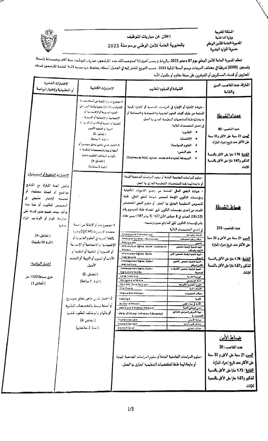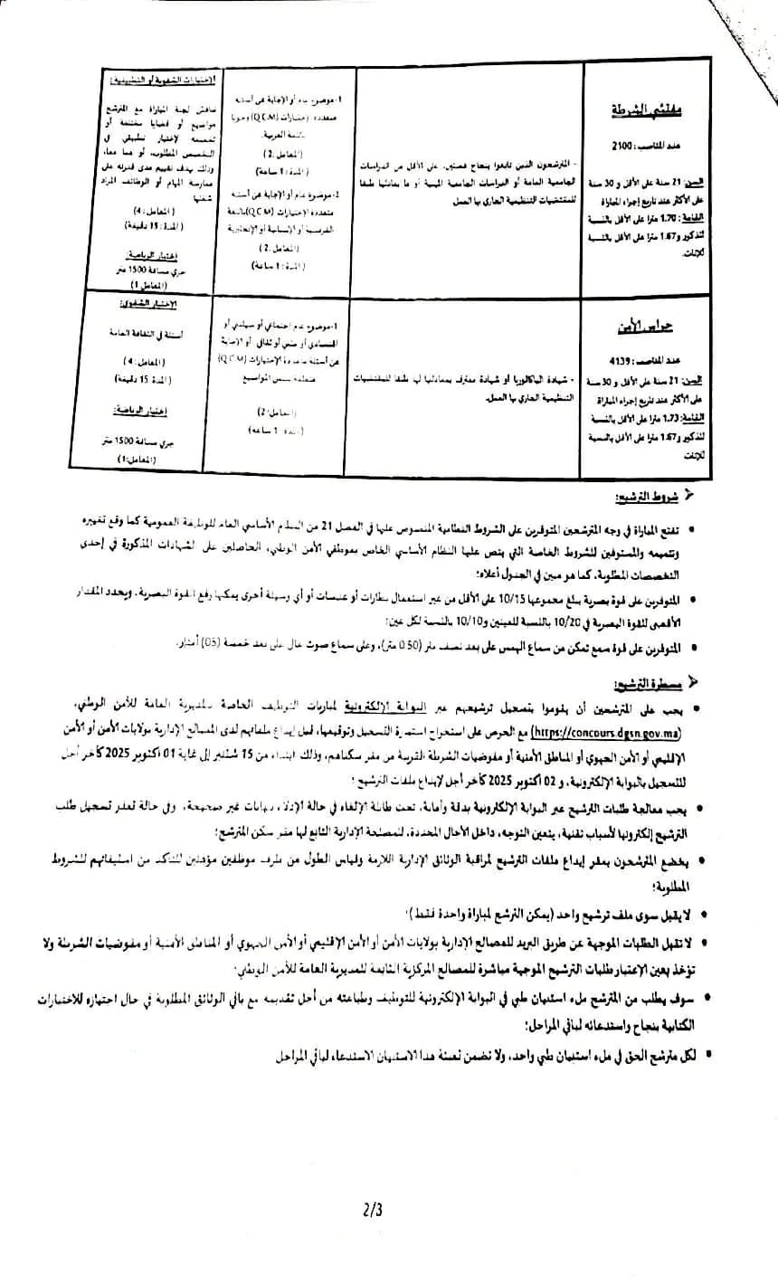 وتم الإعلان عن مباريات الأمن الوطني برسم سنة 2025 والتي تشمل الفئات التالية: