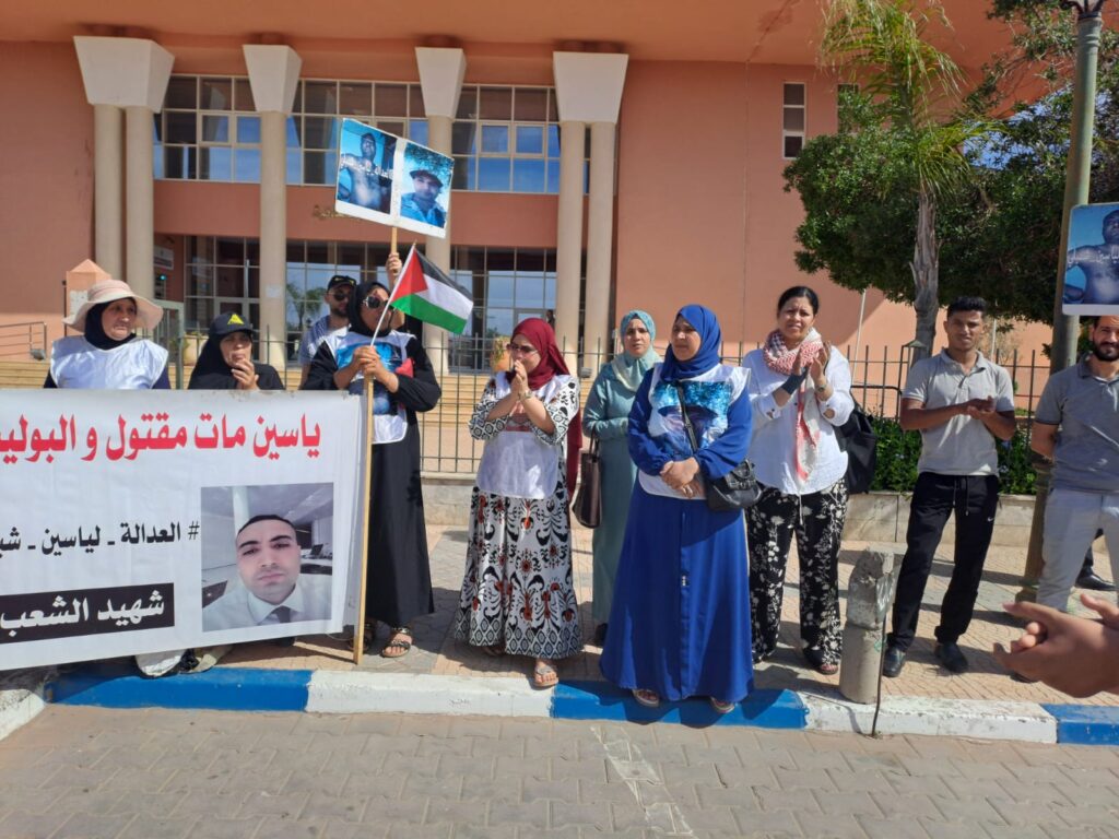 وقد نظمت العائلة ومناضلات ومناضلين من الجمعية المغربية لحقوق الإنسان على غرار الجلسة السابقة، وقفة احتجاجية، أمام مقر المحكمة الابتدائية بابن جرير للتنديد باستمرار محاكمة عائلة الفقيد ياسين الشبلي.