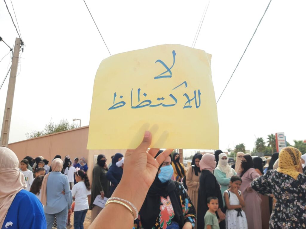 ورفع المحتجون لا فتات وشعارات تندد بحالة الإكتظاظ المزمن الذي تعرفه الحجرات الدراسية، وتطالب بتحرك عاجل من أجل ايجاد حل لهذه المعظلة وتوفير الجوء المناسب للدراسة والتحصيل.