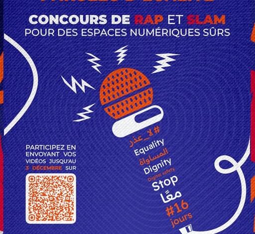 وتدعو هذه المبادرة، بحسب بلاغ للمنظمين، الشباب والشابات الشغوفين بالراب أو السْلام إلى التعبير عن مواهبهم من خلال فيديو يسلط الضوء على مواضيع مرتبطة بالوقاية من مختلف أشكال العنف الرقمي ومناهضتها (مثل التحرش الإلكتروني، ونشر الصور دون موافقة، والابتزاز، والتهديدات…)، إضافة إلى تجارب وروايات ناجيات من العنف، و/أو دور الرجال والفتيان في تعزيز فضاءات رقمية آمنة وشاملة للجميع.