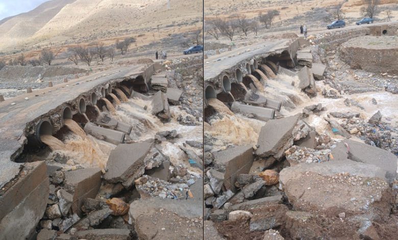 وأفادت المصادر ذاتها، أن الأنابيب المعتمدة في إنجاز القنطرة لم تكن قادرة على استيعاب حجم جريان مياه الوادي خلال التساقطات الأخيرة، ما تسبب في تصدع أركان القنطرة واقتلاع الأنابيب، لتتحول المنشأة إلى ما يشبه الأطلال، وتُقطع معها حركة المرور بشكل كلي.