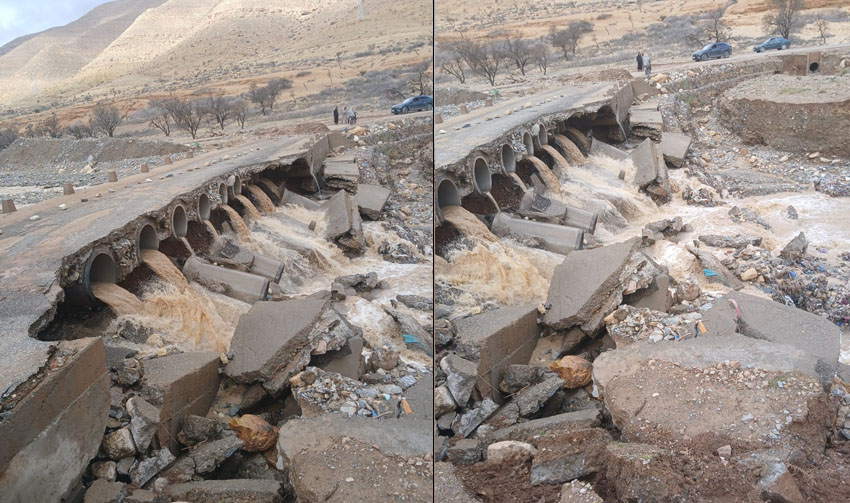 وأفادت المصادر ذاتها، أن الأنابيب المعتمدة في إنجاز القنطرة لم تكن قادرة على استيعاب حجم جريان مياه الوادي خلال التساقطات الأخيرة، ما تسبب في تصدع أركان القنطرة واقتلاع الأنابيب، لتتحول المنشأة إلى ما يشبه الأطلال، وتُقطع معها حركة المرور بشكل كلي.