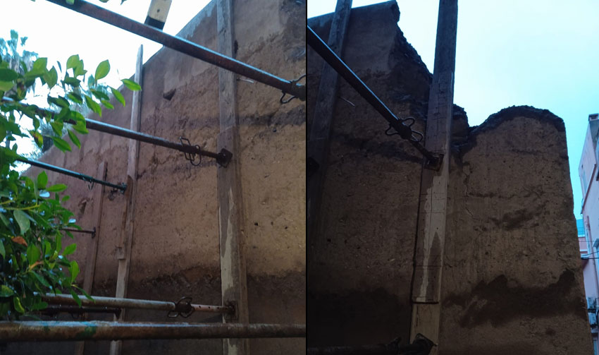 وأوضح مواطنون، في اتصال بصحيفة “المراكشي”، أن أجزاء من الجدار كانت قد انهارت مباشرة بعد الزلزال، متسببة في قطع حركة السير داخل الدرب، ومحاصرة ساكنة أحد المنازل المجاورة لمدة يومين، قبل أن يتطوع أحد عمال البناء بإسناد السور بأعمدة خشبية بشكل مؤقت لتفادي انهياره الكامل.