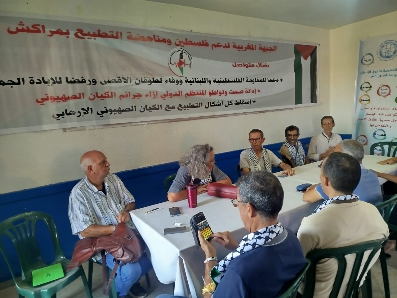 وأكدت الجبهة أن هذه المبادرة تأتي في سياق التعبئة الشعبية المستمرة في مختلف المدن المغربية، تعبيرا عن الدعم الثابت لحقوق الشعب الفلسطيني، ورفضا لكافة أشكال التطبيع مع الكيان الصهيوني.