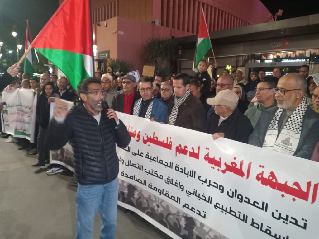 وسبق للجبهة أن نظمت سلسلة من الوقفات تطالب من خلالها بـ”وقف حرب الإبادة الجماعية لساكنة قطاع غزة وسياسة التجويع والتهجير القسري التي ينتهجها الكيان الغاصب، و وقف تطبيع الدولة المغربية مع الكيان الصهيوني”.