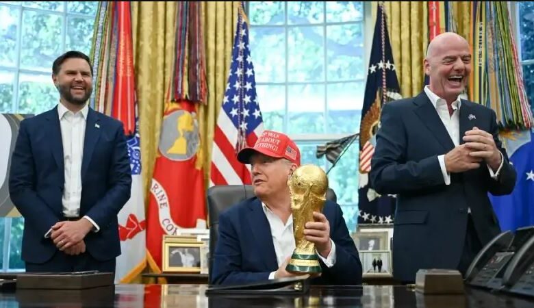 وبهذه المناسبة، سلم رئيس (الفيفا) للرئيس ترامب كأس العالم، مصرحا أن هذه الكأس يحملها “الفائزون فقط”.