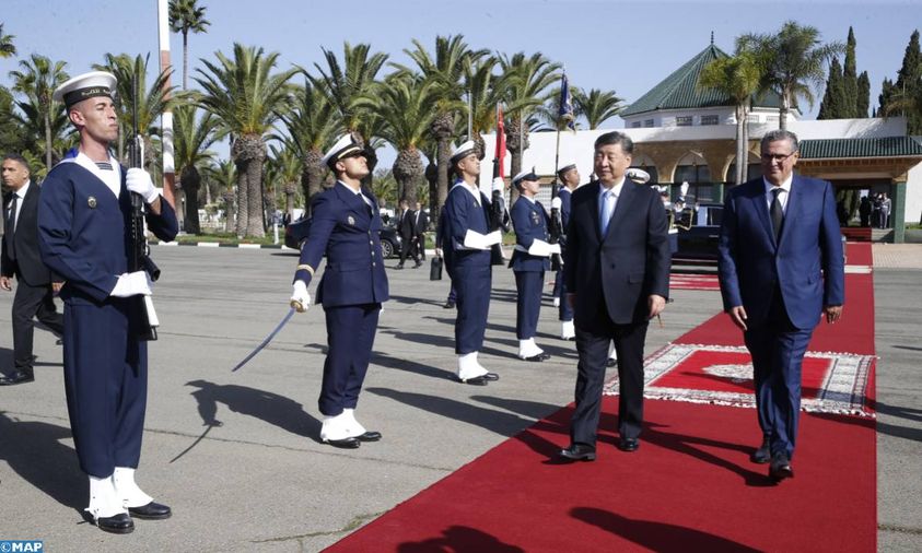 وكان في وداع شي جين بينغ، لدى مغادرته مطار محمد الخامس الدولي بالدار البيضاء، رئيس الحكومة عزيز أخنوش، قبل استعراض تشكيلة من البحرية الملكية أدت التحية.