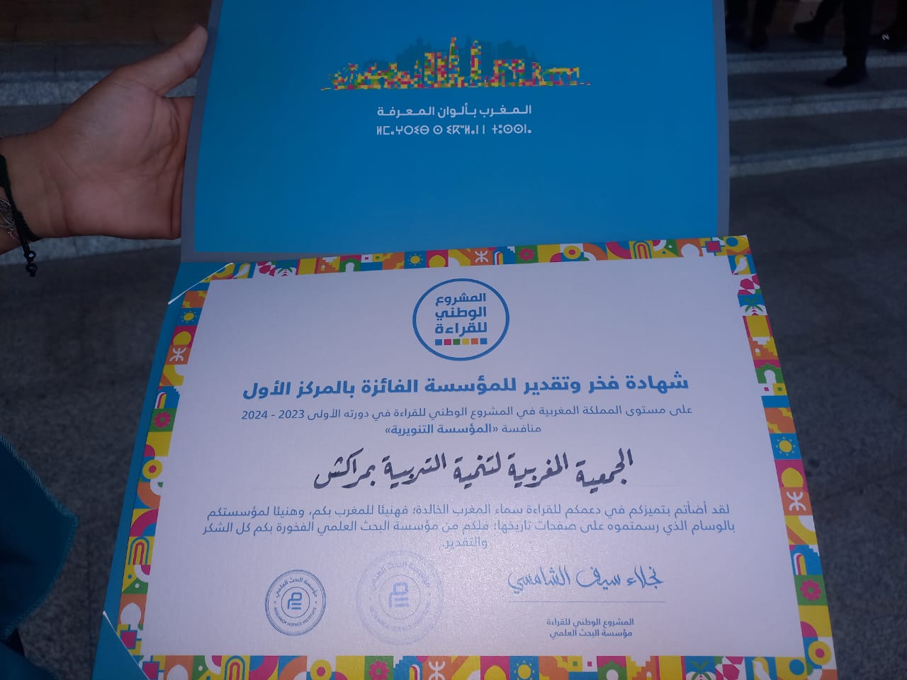 وعرف الحفل الختامي لهذه الدورة تتويج كل من التلميذة فاطمة الزهراء الكزيري في صنف “التلميذ(ة) المثقف(ة)”، والطالبة لبنى صبار صنف “القارئ(ة) الماسي(ة)”، والأستاذة خديجة قوسال صنف “الأستاذ(ة) المثقف(ة)”، والجمعية المغربية لتنمية التربية بمراكش في صنف “المؤسسة التنويرية”.