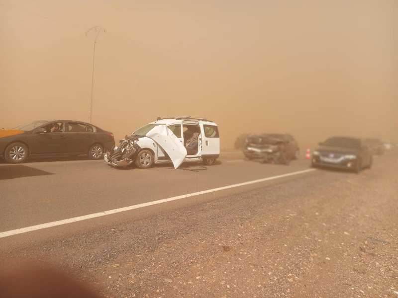 ويبدو أن مستعملي الطريق لم يأخذوا بعين الاعتبار النشرة الانذارية من المستوى الأحمر التي حذرت أمس عن عاصفة مقرونة بتطاير الأتربة، والتي تزامنت مع اليوم الأحد حيث نهاية العطلة المدرسية وعودة المسافرين إلى مساكنهم.