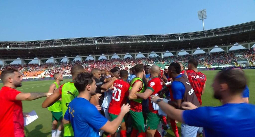 ويرجح أن تتخذ عقوبات جدية ضد “تشانسيل مبيمبا” عميد المنتخب الكونغولي في الساعات القادمة بعدما حاول الإعتداء على لاعبي المنتخب الوطني بعد نهاية المباراة.