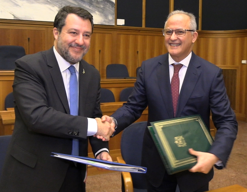وخلال حفل التوقيع على هذا الاتفاق بمقر وزارة البنيات التحتية والنقل الإيطالية، أعرب السيد سالفيني عن إعجابه بأوجه التقدم التي حققها المغرب والازدهار الاقتصادي على مستوى البنيات التحتية الطرقية، والسككية، والمينائية.