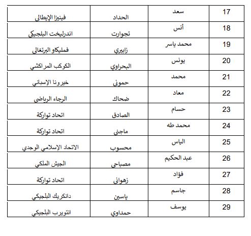 ولهذا الغرض، وجه محمد وهبي، مدرب المنتخب الوطني للاعبين المحليين الدعوة إلى 29لاعبا ويتعلق الأمر بكل من :