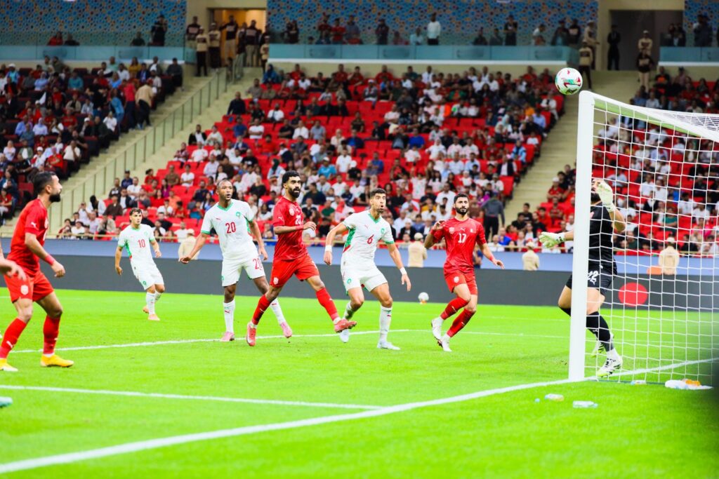 واصطدم لاعبو المنتخب المغربي بدفاع بحريني صلب ومتكتل في الخلف يتقن سد المساحات، ورغم ذلك لم تذخر العناصر الوطنية جهدا في الوصول إلى الشباك، لا سيما بعد دخول الياس أخوماش في الجهة اليمنى.