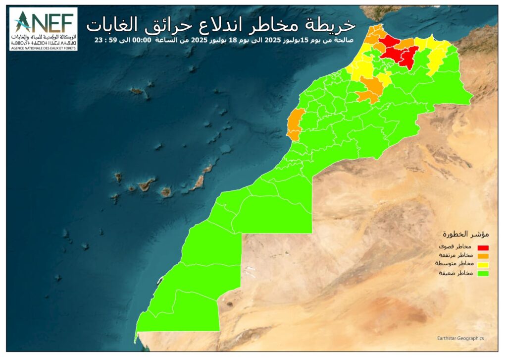 أعلنت الوكالة الوطنية للمياه والغابات أنها ستصدر، من 15 إلى 18 يوليوز الجاري، بناء على معطيات علمية، خرائط تنبؤ تحدد بدقة المناطق الحساسة والمعرضة لخطر اندلاع الحرائق الغابوية، وذلك من أجل استباق ظاهرة حرائق الغابات على الصعيد الوطني.