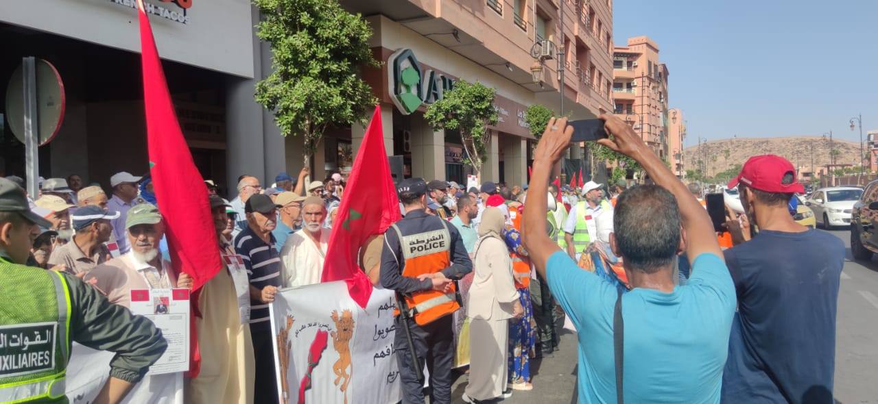 بالصور: احتجاجات بمراكش ضد محاولة ترحيل أسر من قدماء المحاربين إلى العزوزية