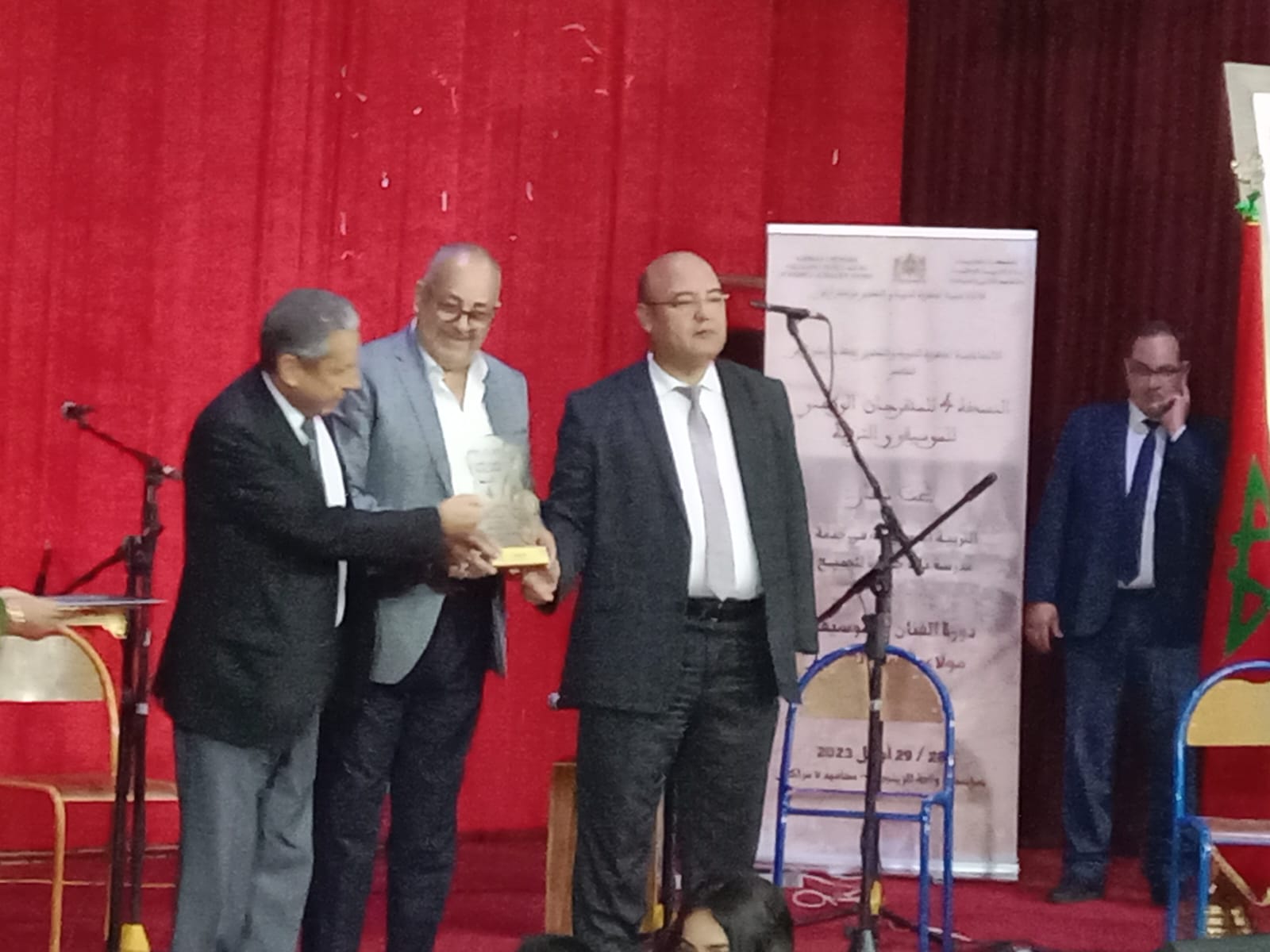 كما شهد الحفل الختامي للمهرجان لحظات قوية في لقاء تكريمي حار للموسيقار والملحن المغربي مولاي أحمد العلوي، بحضور مجموعة من الفعاليات الوطنية في المجال الفني والتربوي، بحضور وفد رسمي لوزارة التربية الوطنية والتعليم الاولي والرياضة، ضم إلى جانب مدير الأكاديمية الجهوية للتربية والتكوين مراكش آسفي مولاي أحمد الكريمي، كل من ممثلي الوزارة، والمفتش العام للشؤون التربوية بوزارة التربية الوطنية الدكتور فؤاد الشفيقي، ورؤساء المصالح بالأكاديمية والمديريات بالجهة ، وممثلي المؤسسات الشريكة وفعاليات المجتمع المدني والصحافة والإعلام.