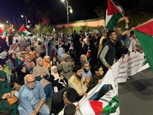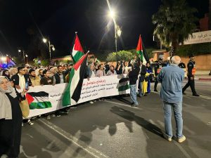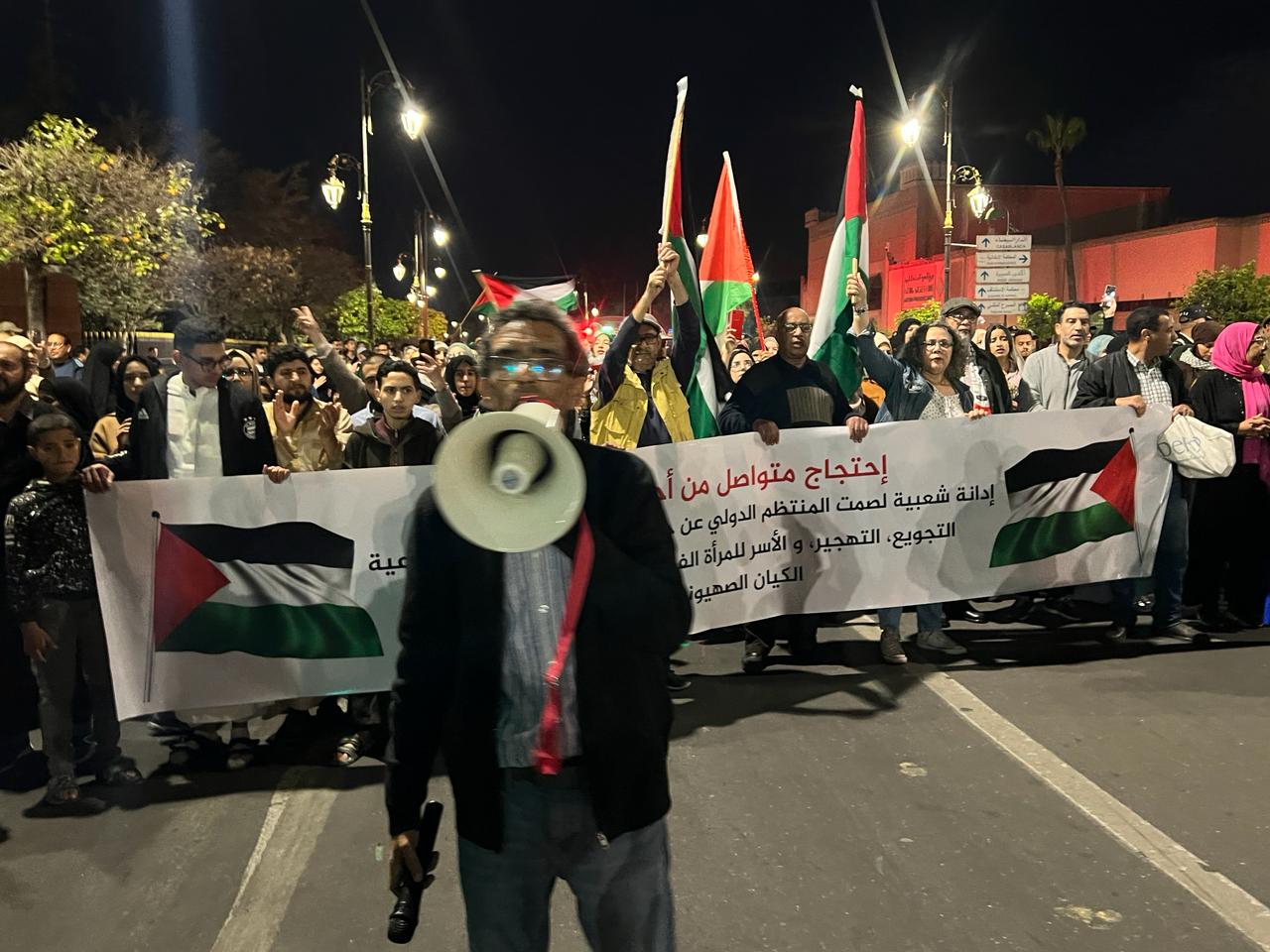 نظمت الجبهة المغربية لدعم فلسطين ومناهضة التطبيع بمراكش، ليلة أمس السبت 16 مارس الجاري، مسيرة احتجاجية للتعبير عن تضامنها ومساندتها للشعب الفلسطيني.
