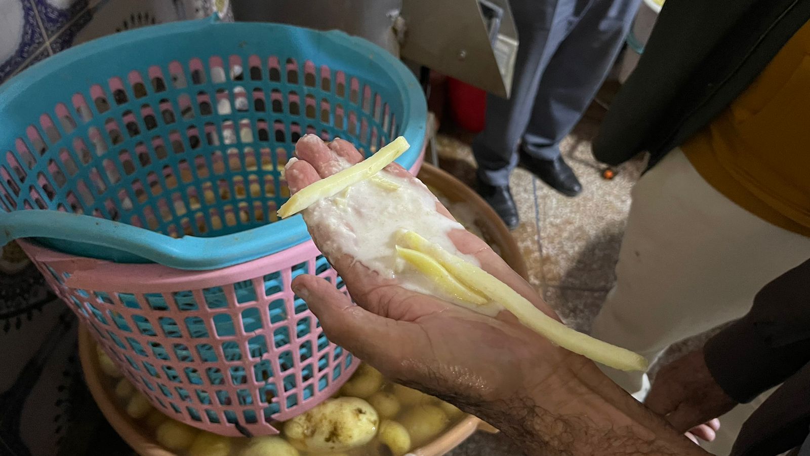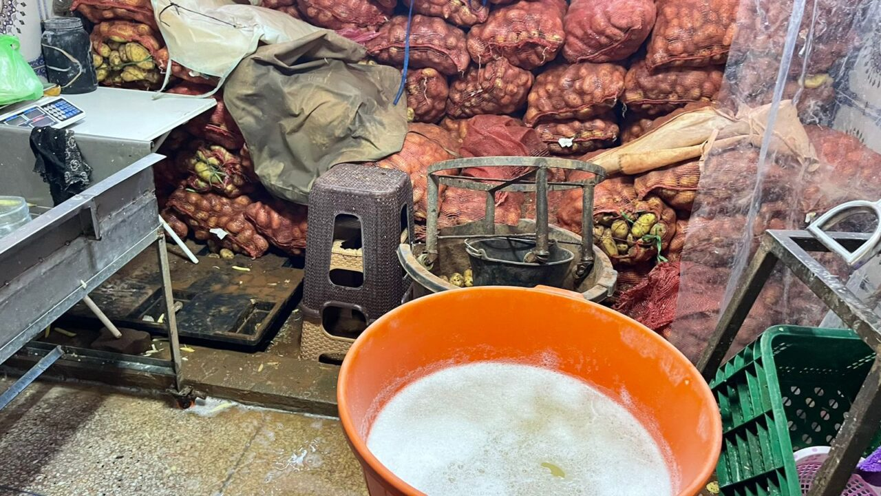 وبحسب المعطيات التي توصلت بها صحيفة “المراكشي” مرفوقة بمجموعة من الصور، فإن العملية أسفرت عن حجز أزيد من 750 كيلوغرام من البطاطس غير الصالحة للإستهلاك يتم اعدادها على شكل “فريت” قبل بيعها للمطاعم و”السناكات”، إضافة إلى حوالي كيلوغرام من “حمض البيوسلفات” يتم استعماله للحفاظ على لون البطاطس.