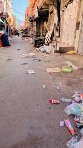 وقال مواطنون في اتصال بصحيفة “المراكشي”، إن الزنقة الشهير باسم (السويدي) تم إغراقها بالنفايات والمواد البلاستيكية والكارتونية التي لم يتورع بعض التجار برميها في الملك العمومي قبالة محلاتهم، حيث ساهمت هذه السلوكات في رسم مشاهد تثير الإشمئزاز صبيحة عيد الفطر الذي من المفترض أن يستقبله الساكنة في أجواء نظيفة.