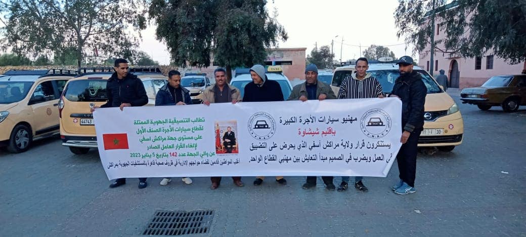 نظم مهنيو سيارات الأجرة الكبيرة بإقليم شيشاوة، صباح اليوم الأربعاء 18 يناير الجاري، وقفة احتجاجية للتعبير عن رفضهم لقرار صادر عن والي جهة مراكش آسفي.