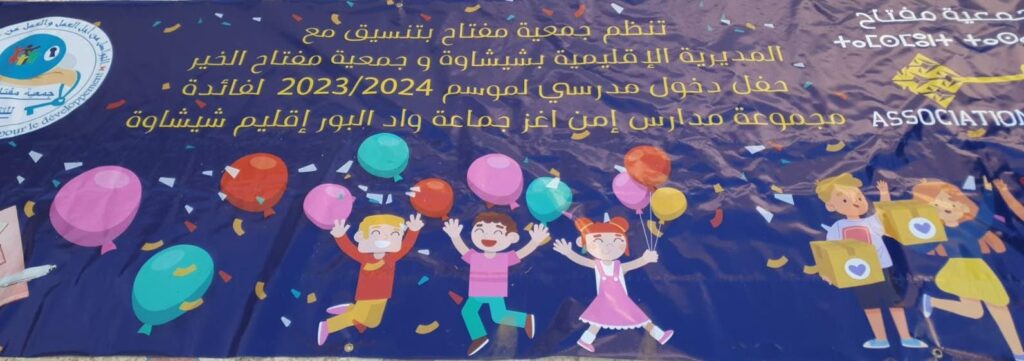 نظمت جمعية مفتاح بتنسيق مع المديرية الإقليمية لوزارة التربية الوطنية بشيشاوة وجمعية الخير بالدار البيضاء، حفلا بمركزية “إمن إغز” بالجماعة الترابية لواد البور، بمناسبة الدخول المدرسي لهذا الموسم 2023/2024.