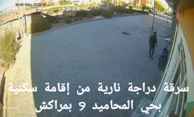 بالفيديو: سرقة دراجة نارية من داخل إقامة سكنية بحي المحاميد بمراكش