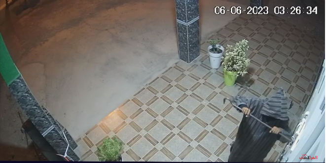 وتظهر مشاهد التقطتها كاميرات المراقبة، الجناة أثناء عملية كسر الأقفال باستعمال عمود حديدي (بينسة).