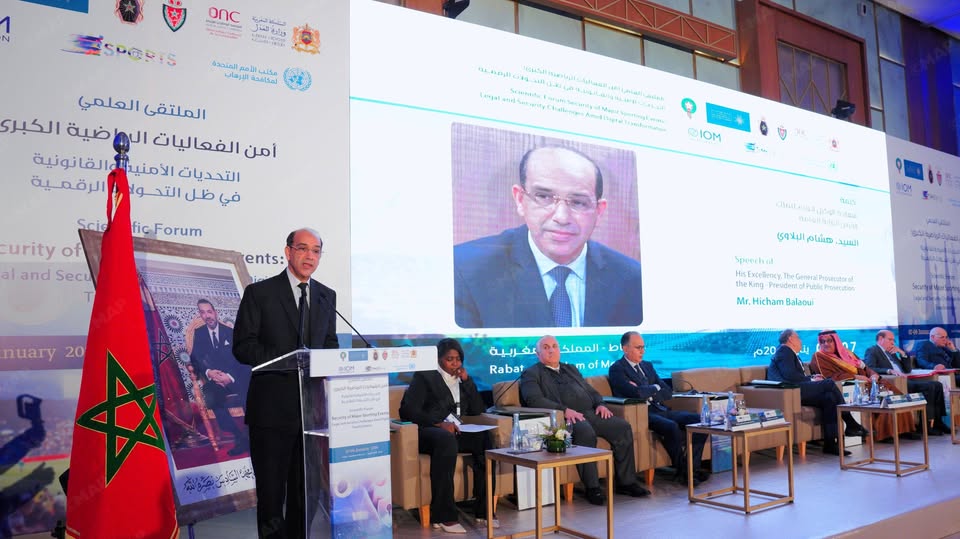 وأوضح البلاوي، خلال افتتاح الملتقى العلمي الدولي حول أمن الفعاليات الرياضية الكبرى التحديات الأمنية والقانونية في ظل التحولات الرقمية، أن رئاسة النيابة العامة وجهت عدة دوريات للنيابات العامة تصب في اتجاه تأمين التظاهرات الرياضية، من بينها دورية من أجل التفعيل الصارم للمقتضيات الزجرية الواردة في القانون المتعلق بالعنف المرتكب أثناء المباريات أو التظاهرات الرياضية أو بمناسبتها لاسيما عبر مباشرة الأبحاث اللازمة في حق كل من يشتبه تورطه في هذا النوع من الإجرام مع الحرص على تقديم ملتمسات الى هيئات المحكمة من أجل الحكم بعقوبات رادعة تتناسب وخطورة الأفعال المرتكبة مع التماس تطبيق العقوبات الإضافية الواردة في الفصل 308-18 في حق المتابعين وشمولها بالنفاذ المعجل.