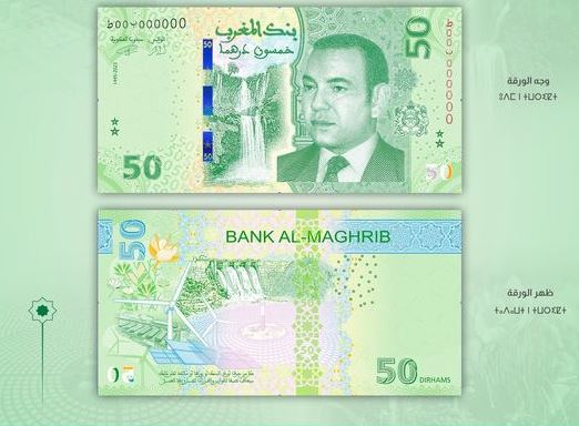طرح بنك المغرب للتداول ورقة بنكية جديدة من فئة 50 درهما، ابتداء من اليوم الثلاثاء، وذلك بالتزامن مع تخليد الذكرى الخامسة والعشرين لتربع الملك محمد السادس على عرش أسلافه المنعمين.