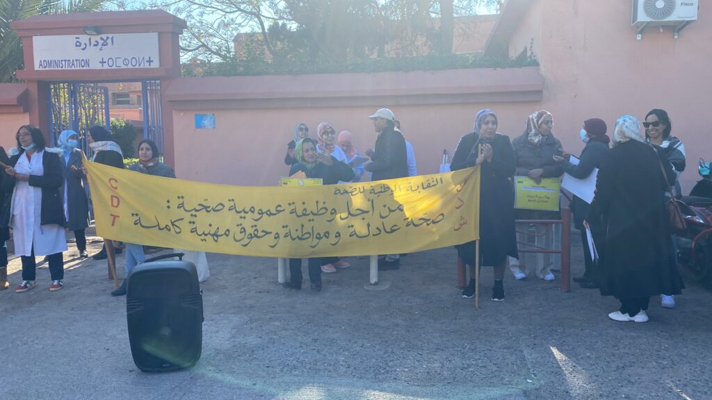 نظم المكتب الإقليمي للنقابة الوطنية للصحة بمراكش (كدش) والمكتب الإقليمي للنقابة المستقلة لأطباء القطاع العام لمراكش، صباح اليوم الخميس 12 يناير الجاري، وقفة احتجاجية أمام إدارة المركز الإستشفائي ابن زهر.