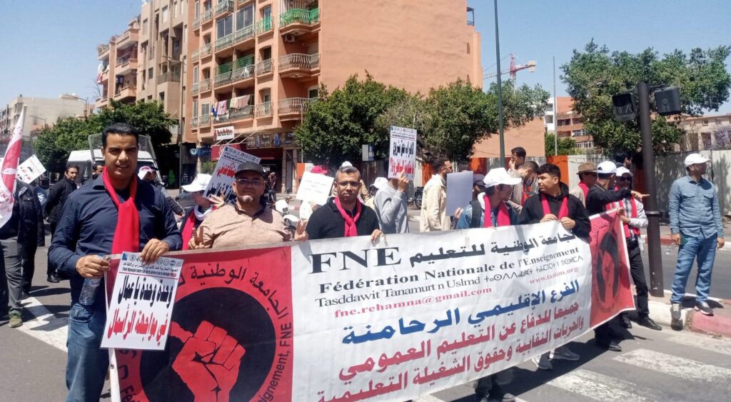 أعلن المكتب الإقليمي للجامعة الوطنية للتعليم FNE بالرحامنة عن خوض إضراب إقليمي إنذاري يوم الخميس 20 نونبر 2025، مرفوقا بوقفة احتجاجية أمام المديرية الإقليمية ابتداء من الساعة الحادية عشرة صباحا، وذلك احتجاجا على ما وصفه بـ”التعنت والمماطلة” في التعامل مع الملفات المطلبية للشغيلة التعليمية، و”تفشي الاختلالات التدبيرية” داخل المؤسسات التعليمية بالإقليم.