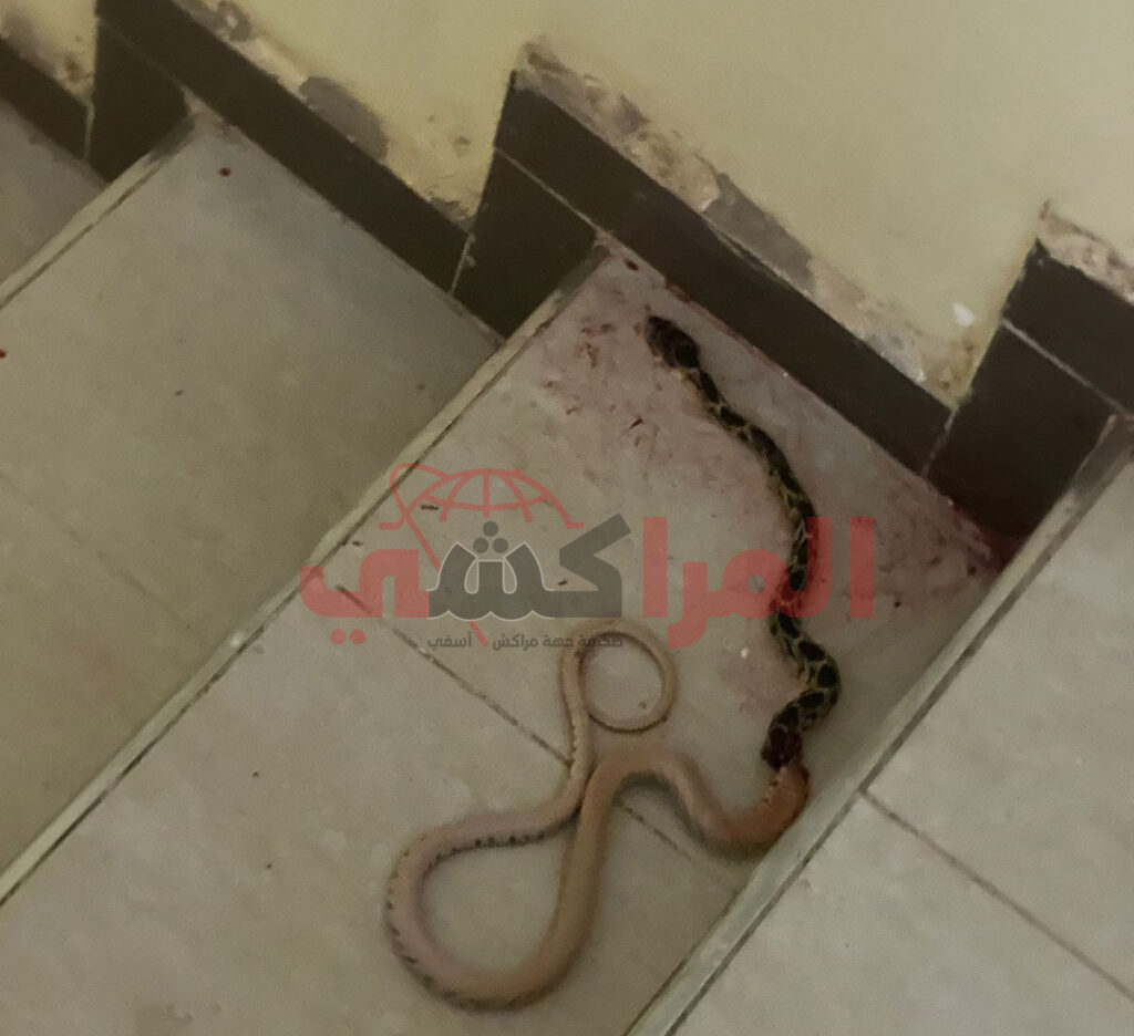 وبحسب المعطيات التي توصلت بها صحيفة “المراكشي”، فإن الثعبان الذي يفوق طوله متر حاول الفرار عبر السلالم لحظة ملاحقته من طرف عدد من الساكنة، قبل أن يتمكنوا من محاصرته وقتله.