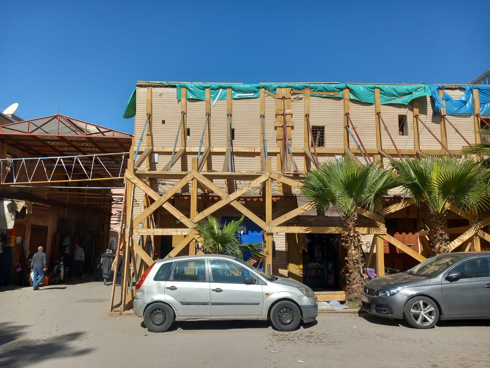 و أشارت الجمعية الحقوقية إلى أن “السلطات المختصة لجأت الى ما يسمى وضع دعامات خشبية لمحاصرة الأزمة، وفي بعض المناطق لجأت الى الدعامات الحديدية، ورغم ذلك استمرت احتجاجات السكان خاصة أصحاب المحلات التجارية والمرافق السياحية بزنقة القباضة برياض الموخى، و أصحاب الفنادق غير المصنفة بدرب سيدي بولوقات، والعديد من الحرفيين في مختلف دروب المدينة العتيقة يطالبون من السلطات التدخل لرفع خطر جدران عازلة أو أسوار أو مباني آيلة للسقوط قد تهدد السلامة البشرية في حال انهيارها مشيرين إلى أن الأعمدة الخشبية او الحديدية التي تدعم الجدارن غير كافية لتجنب المخاطر”.