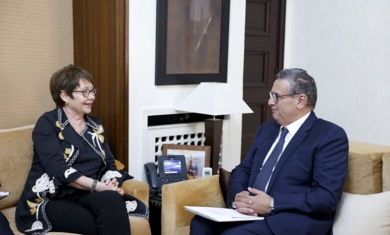 أجرى رئيس الحكومة عزيز أخنوش، اليوم الخميس بالرباط، مباحثات مع رئيسة البنك الأوروبي لإعادة الإعمار والتنمية، أوديل رونو-باسو، شكلت مناسبة لاستعراض الأوراش التنموية الكبرى التي باشرتها المملكة، بقيادة الملك محمد السادس.