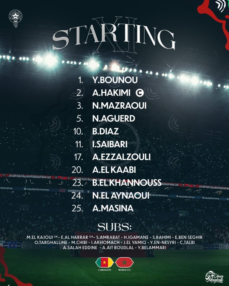ربع نهائي كأس أفريقيا.. تشكيلة المنتخب المغربي أمام الكاميرون