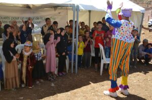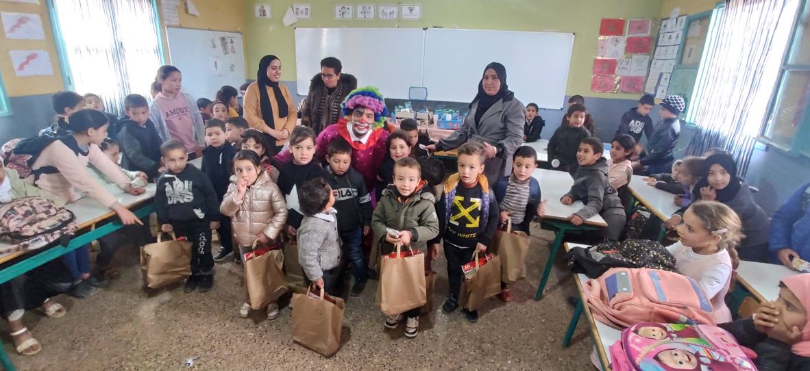 وتم تنشيط الحصة الترفيهية من لذن فنانين مهرجين جعل الصغار ينسون ويتجاوزوا الصدمة التي تعرضوا لها وبالتالي أعادت البسمة لوجوههم بالنسبة لطفل من العالم القروي، يعتبر هذا الدعم وهذه الهدايا نادرة وثمينة ويمكن أن تساهم في تطورهم المعرفي.
