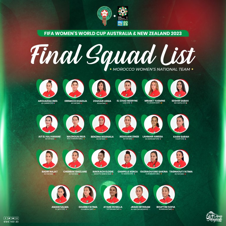كشف “رونالد بيدروس” مدرب المنتخب الوطني المغربي لكرة القدم النسوية عن القائمة النهائية للاعبات اللواتي سيمثلن المنتخب الوطني في نهائيات كأس العالم، والتي ستجرى اطوارها مناصفة ما بين استراليا ونيوزيلندا.