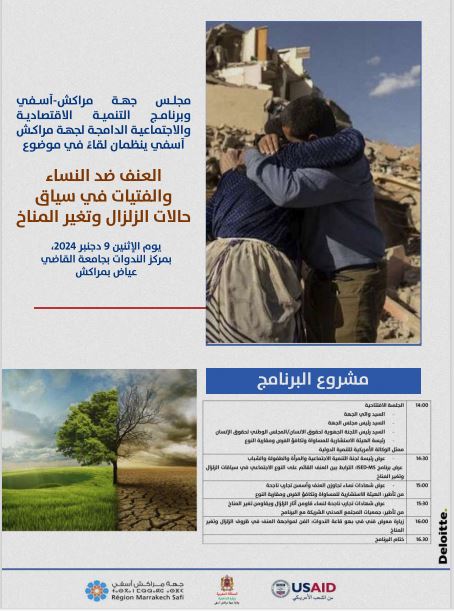 و يأتي هذا اللقاء في سياق تعزيز استجابة المجتمع لآثار العنف القائم على النوع الاجتماعي، خاصة في حالات الطوارئ الطبيعية مثل الزلازل وتغير المناخ، وذلك لتعزيز الوعي بالتحديات التي تواجه الفئات الهشة، لاسيما النساء والفتيات، في حالات الطوارئ والكوارث الطبيعية، وتبادل الخبرات والمعارف، والتداول حول الحلول المبتكرة للتخفيف من آثار العنف القائم على النوع الاجتماعي، بالإضافة إلى بناء قدرات الفاعلين المحليين، وتعزيز التعاون والشراكات، في أفق فتح آفاق التعاون بين الجهات الحكومية، المجتمع المدني، والمؤسسات الدولية لتقديم استجابة متكاملة ومستدامة.