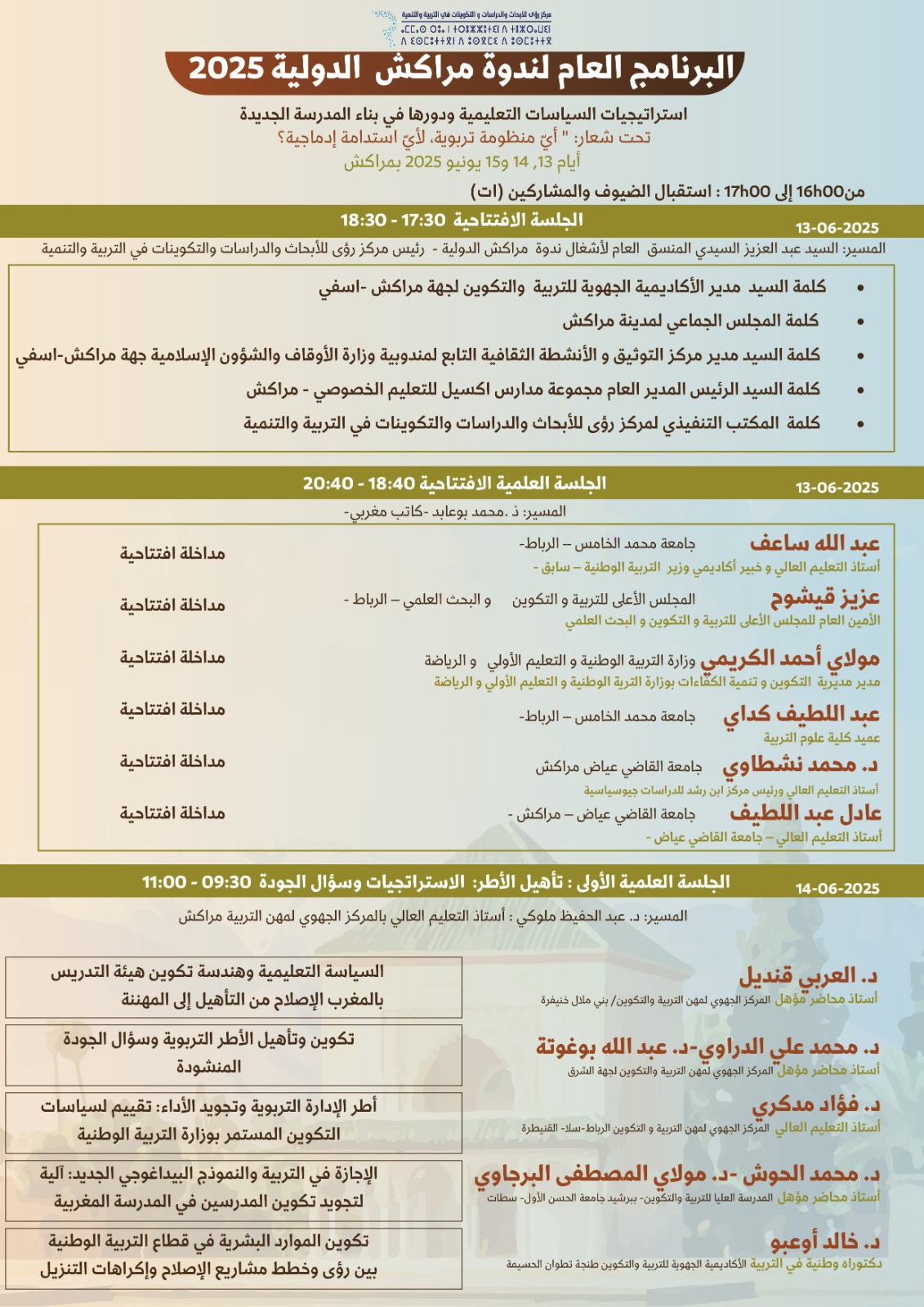 ينظم مركز رؤى للأبحاث والدراسات والتكوينات في التربية والتنمية، بشراكة مع مؤسسات عمومية وخاصة، ندوة دولية أيام 13 و14 و15 يونيو 2025 بمراكش، تحت عنوان: “استراتيجيات السياسات التعليمية ودورها في بناء المدرسة الجديدة.