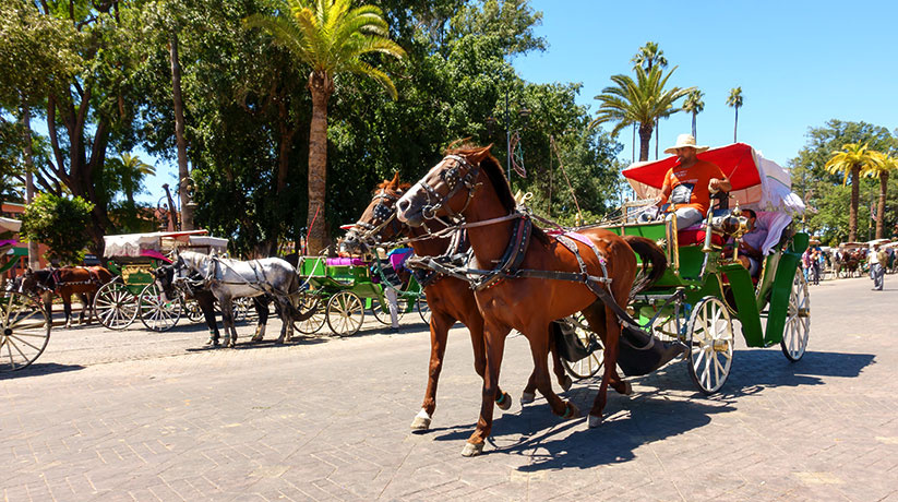 وعلى إيقاع الحركات المتناسقة للخيول والنغمات الصادرة من الصفائح الحديدية المثبتة بحوافرها وتمايل “الناقوس” النحاسي المعلق على أعناقها، تأخذ العربات المجرورة بالأحصنة السائح في رحلة ممتعة للاستمتاع برونق وجمالية المدينة واستكشاف ما تزخر به من فضاءات سياحية ومعالم تاريخية وتراثية .