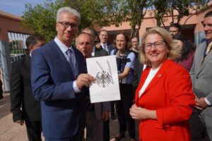 على هامش الاجتماعات السنوية للبنك الدولي وصندوق النقد الدولي، قامت “سفينجا شولز”، وزيرة التعاون الاقتصادي والتنمية بحكومة ألمانيا الفيديرالية، رفقة والي جهة مراكش – آسفي، عامل عمالة مراكش، أمس الجمعة 13 أكتوبر الجاري، بزيارة لمركز خدمات المواطنين بالملحقة الإدارية سيدي يوسف بن علي الشمالي،