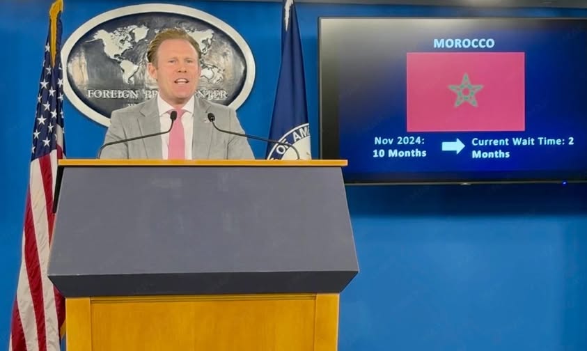 وأوضح المسؤول الأمريكي رفيع المستوى، خلال مؤتمر صحافي عشية تنظيم حفل قرعة المونديال، المقرر الجمعة في العاصمة الأمريكية، أن الأمر يتعلق بتقليص “بأزيد من 80 بالمائة مقارنة مع آجال الانتظار المسجلة في نونبر 2024 بالنسبة للمغاربة الراغبين في الحصول على تأشيرة إلى الولايات المتحدة”.