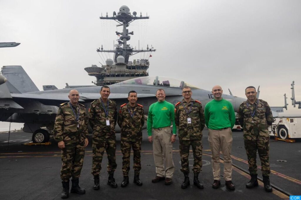 تنفيذا للتعليمات الملكية السامية، وفي إطار التعاون العسكري المغربي – الأمريكي، قام وفد من القوات المسلحة الملكية يقوده الفريق أول محمد بريظ، المفتش العام للقوات المسلحة الملكية وقائد المنطقة الجنوبية، أمس الاثنين، بزيارة على متن حاملة الطائرات الأمريكية “يو إس إس هاري ترومان” بالبحر الأبيض المتوسط في عرض ساحل مدينة الحسيمة.